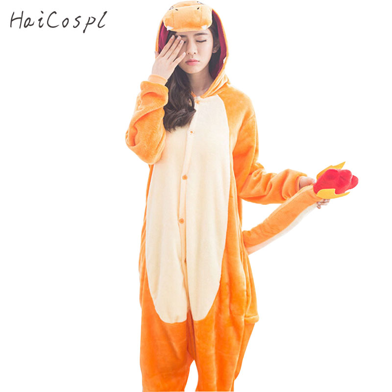 Buy Online Charmander Kigurumi Pajamas Cosplay Costume Women Adult Cute Animal Onesie Flannel Warm Winter Sleepwear Party Fancy Alitools