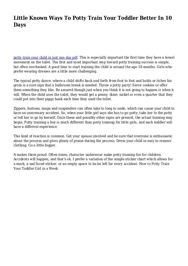 Little Known Ways To Potty Train Your Toddler Better In 10 Days