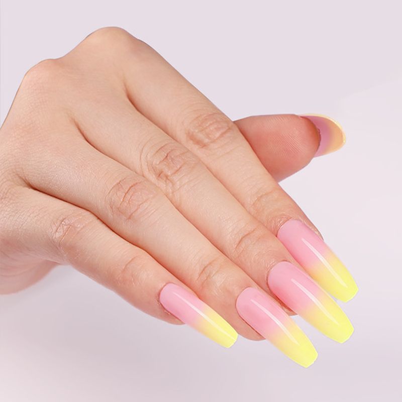 Classic Simple Yellow Gradient Press On Nails Coffin Ballet Shoe Shape Design Long Girls Wearing Manicure Hands Decor From Afantihealth 10 38 Dhgate Com