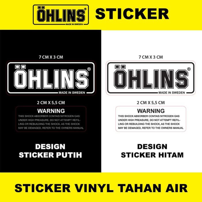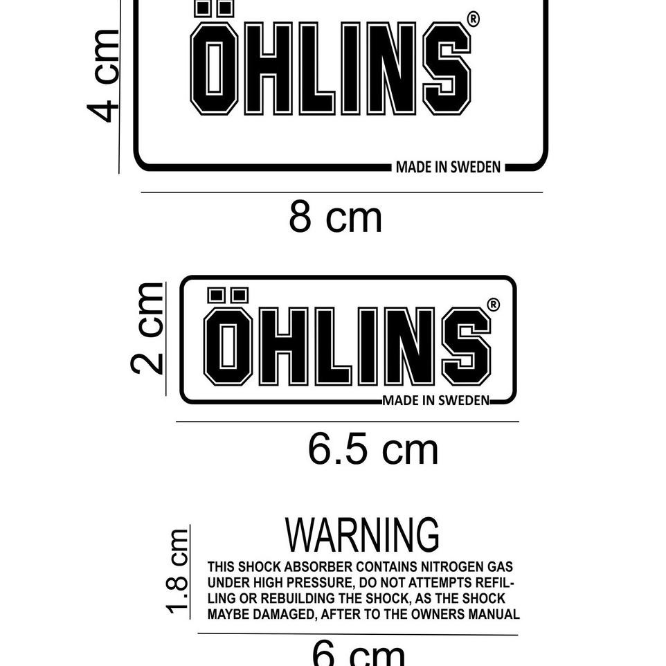 Showing 1 to 3 of 3 1 Pages Free Shipping For online web Orders. 2x Kais Ohlins shock sticker 50mm x 40mm. Ukuran 55 x 25 1 set isi 4pcs 2ohlins 2warning.